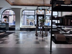 Its location is almost impossible to improve upon. Set in Östermalm, on one of the district’s most elegant pedestrian streets, the hotel already begins with a competitive advantage that cannot be manufactured: position, architecture, and atmosphere. The building itself has that quietly assured Northern European elegance, with its glass-and-iron character and a sense of permanence that immediately gives the property credibility.